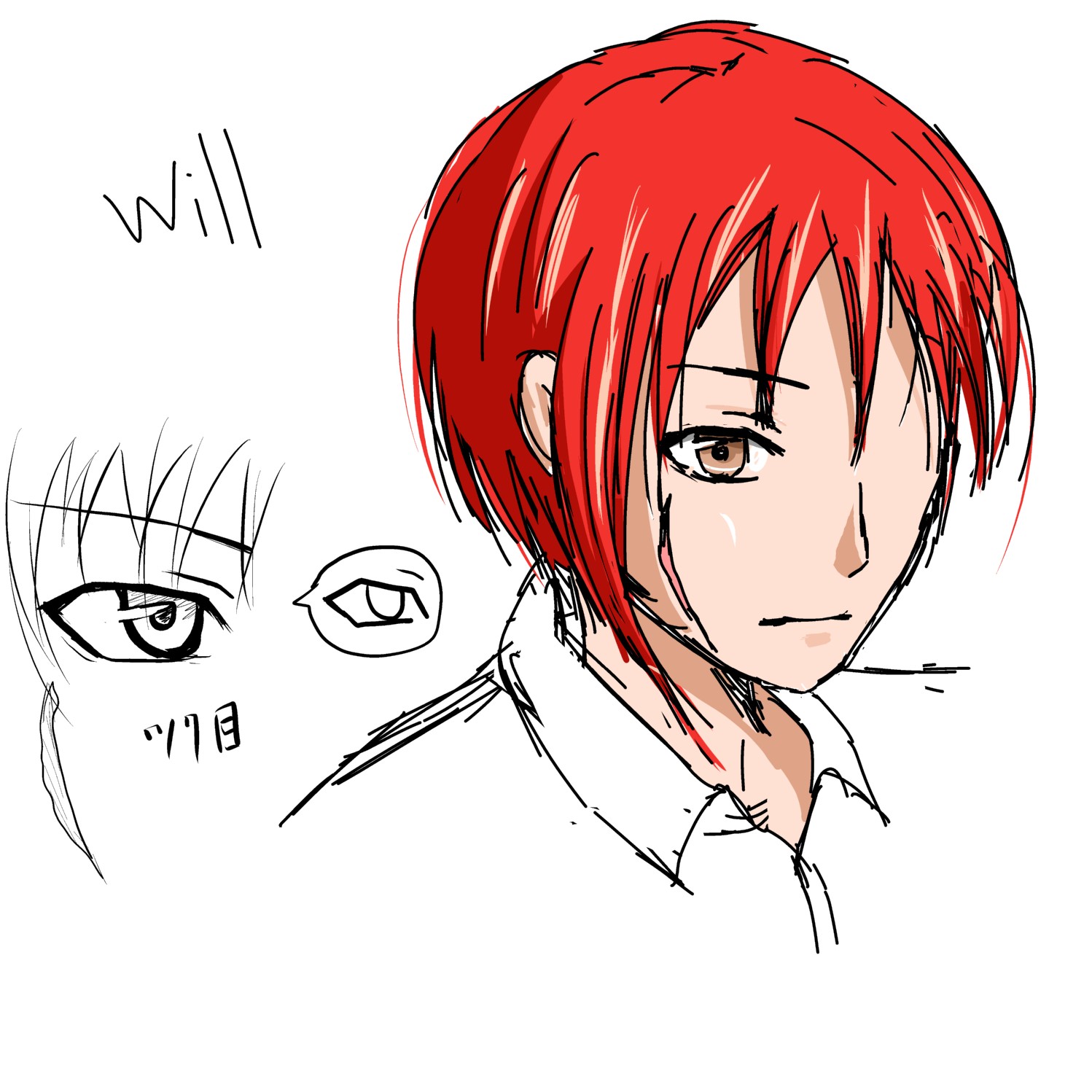 2ページ目から早速新キャラです。カラーリングは以下の通り、朱色の髪に薄茶色の目です。