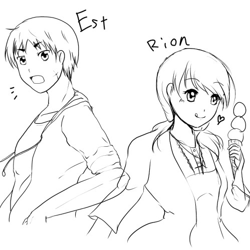 サイトではエストは10歳のちびっ子状態ですが、実はリオンと同い年です。二人が本編とかで一堂に会する機会があったら、こんな感じになるのでしょうね。