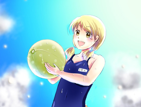 上の絵ではスク水を着てますが、サイトに乗っけてるのは普通の白い水着です。