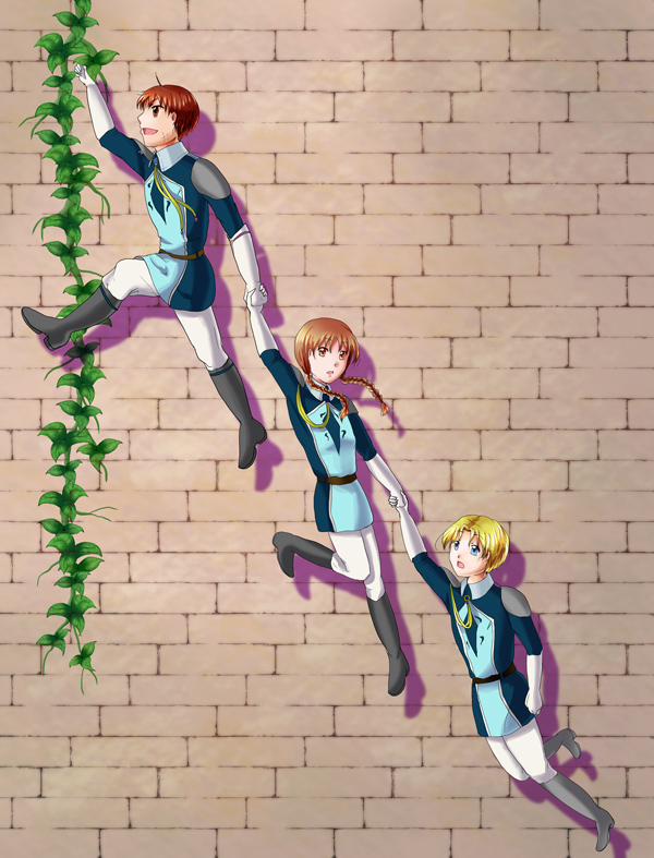 画像にある3人の新兵がワーワー騒ぎつつなんかやらかすお話です。本編はどシリアスですが、こちらは軽めのお話なので(メンタル面では)サクッと読めるかと思います。